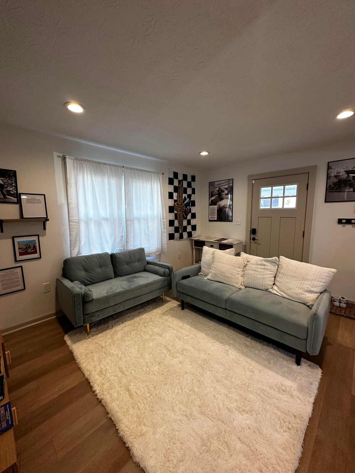 Trygt, fredelig forstadsnabolag. Bare 15 minutter fra sentrum av Indy. Enkel kjøretur til IUPUI, Convention Center, Lucas Oil Stadium. Du parkerer ved døren din. Flott for langvarige opphold. Fullt utstyrt kjøkken. Gratis vaskerom. Polstret kontorstol og raskt trådløst nettverk på arbeidsstasjonen for bærbar datamaskin. 55 tommers Vizio 4K HDR Smart-TV. Moon Pod Zero Gravity-stol for terapeutisk avslapning. Queen-size Sealy Plush Pillowtop hybridmadrass, med to standard skumputer og to MyPillows.