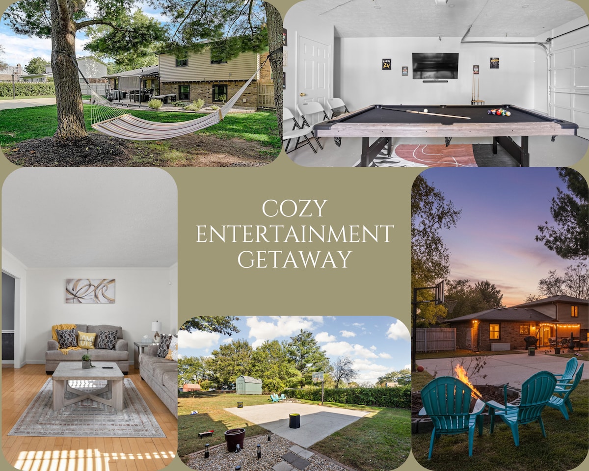 Experience BlueRoza, your ultimate getaway near downtown Indianapolis! Relax in the hot tub, enjoy a private movie theater, or challenge friends in the arcade. With games inside and out, a cozy firepit, and space for up to 13 guests (6 beds, 4 baths), it’s perfect for fun and relaxation. Note: Train tracks are nearby, so occasional noise may occur—bringing earplugs is recommended. Minutes from downtown, with parking for 4-5 cars. Come and feel the FunVibes at BlueRoza!