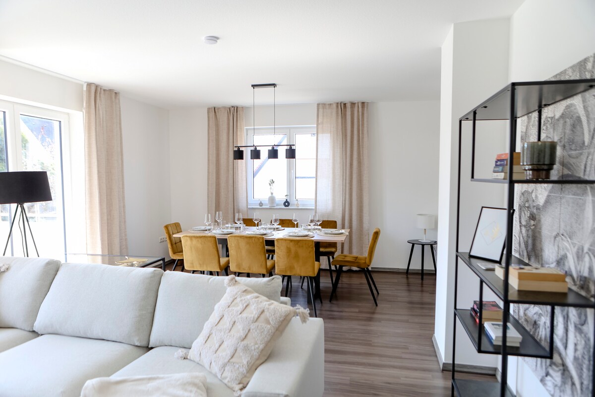 Velkommen til Lumen Homes og denne luksuriøse leiligheten som tilbyr deg alt for et flott opphold i Ingolstadt: → gangavstand til Audi på åtte minutter og til gamlebyen på ti minutter. → skrivebord med skjerm → to dobbeltsenger med boxspring → uttrekkbar seng for femte og sjette gjest → sovesofa for 7. og 8. gjest → Smart-TV og NETFLIX. → NESPRESSO-kaffe → kjøkken med topputstyr → badekar, dusj, separat toalett → vaskemaskin → Parkeringsplass – → balkong. ☆«Stedet var perfekt på alle måter!»