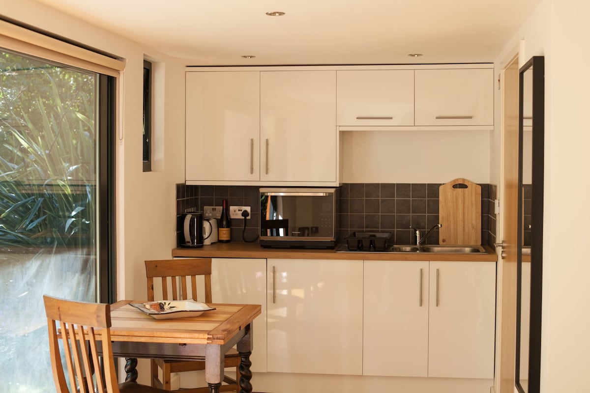 Det nybygde annekset ligger utenfor hovedveien på eiendommen til huset vårt. Det romslige annekset med ett soverom har en tilgjengelig dusj og et kjøkkenområde fylt med grunnleggende utstyr, servise, mikrobølgeovn, enkel platetopp, vaskemaskin og kjøleskap. Superraskt trådløst nettverk er tilgjengelig overalt med tilgang til vår nydelige hage med lekeområde for barn. Ligger i en vakker del av SE London gangavstand til mange grønne områder, f.eks. Greenwhich park. Lewisham sykehus ligger fem minutter unna og ni minutter til byen.
