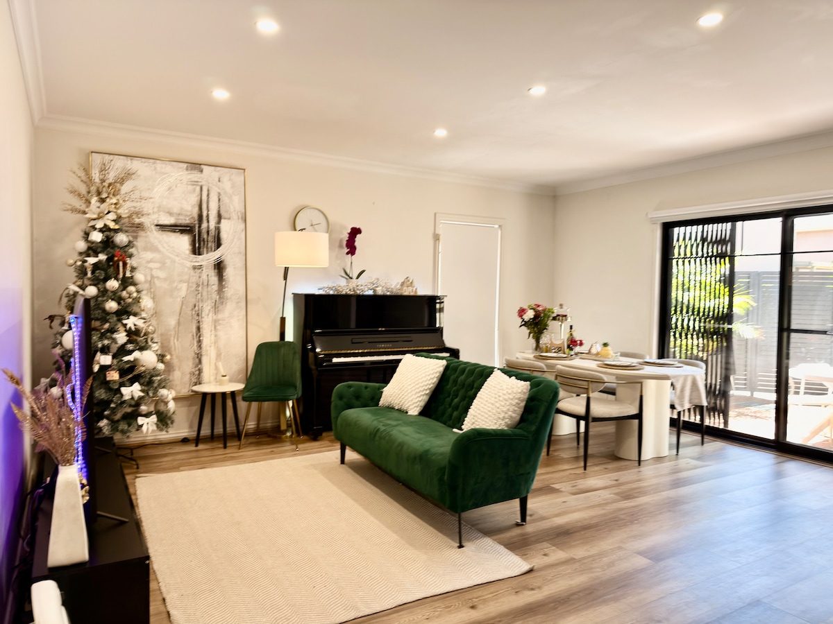 Denne renoverte terrassen føles som hjemme. Møbler av høy kvalitet, trådløst nettverk (NBN Superfast), Netflix, Disney på en stor smart-TV, utstyrt kjøkken, bad i hotellkvalitet (renovert i 2020), vaskemaskin og tørketrommel. Huset er rolig, men likevel svært praktisk, og ligger overfor en løvrik lekeplass og bare en kort spasertur til kollektivtransport, King Streets hundrevis av butikker og restauranter, pluss bare 20 minutter til CBD. Klimaanlegg ovenpå og nede. Bilparkering for en liten bil.
