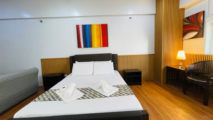 Beskrivelsesideer: Nyt et komfortabelt og praktisk opphold i denne fullstendig selvstendige studioleiligheten, som ligger bare noen få skritt unna noen av de beste stedene Manila har å tilby: * Prime Location: innenfor gangavstand fra den amerikanske ambassaden, store kjøpesentre, restauranter, sykehus og populære nattelivssteder. * Ulastelig renhold: Forvent et plettfritt og komfortabelt sted, perfekt for både kortvarige og langvarige opphold. Andre ting det er verdt å merke seg: Fri bruk av basseng og treningssenter (8. etasje).