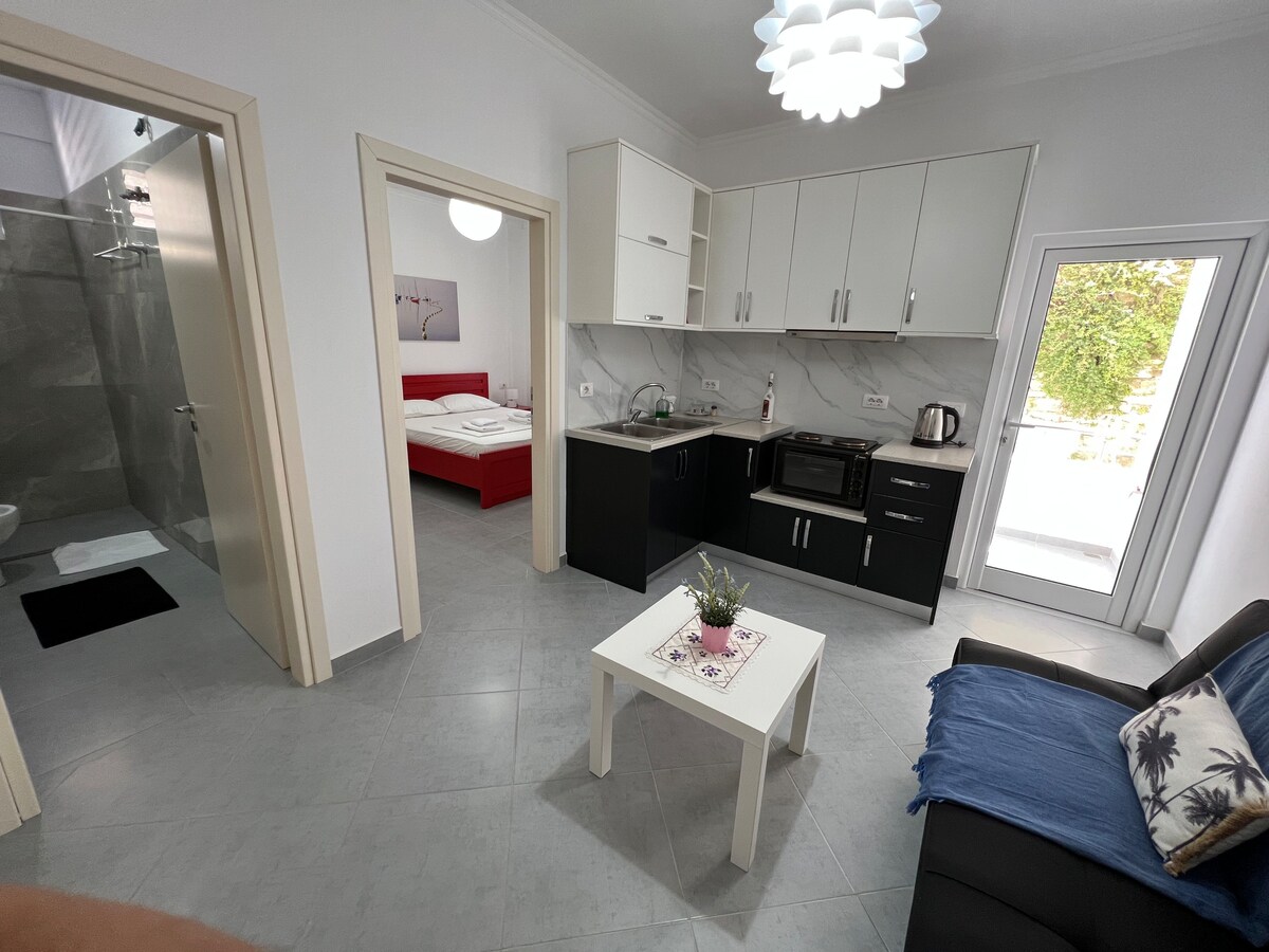 Nydelig leilighet med ett soverom og sjøutsikt i Saranda