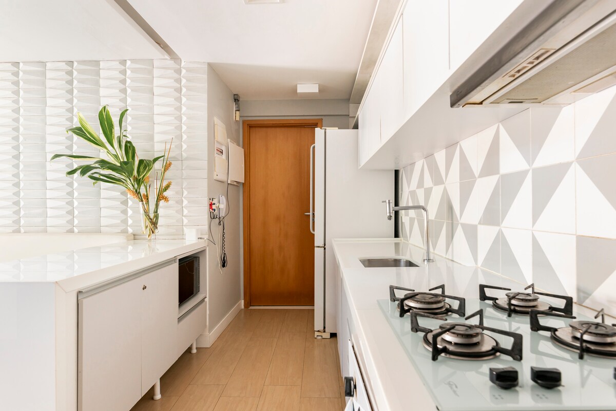 A SOMENTE 2 MINUTOS DA PRAIA!! Aconchegante e finamente decorado com moveis planejados, acomodamos 6 pessoas. Aqui, cada detalhe foi projetado para seu conforto e de sua família, queremos que desfrutem ao máximo a sua estadia. Com uma linda vista para o mar, varanda, sala com sofá cama, cozinha bem equipada c/ coocktop, eletros, micro ondas, geladeira, churrasqueira, 1 suite c/cama king , 1 quarto, banheiro, todos os cômodos com ar , tv , enxoval, internet free. Beatriz Helena Barbosa Cordeiro