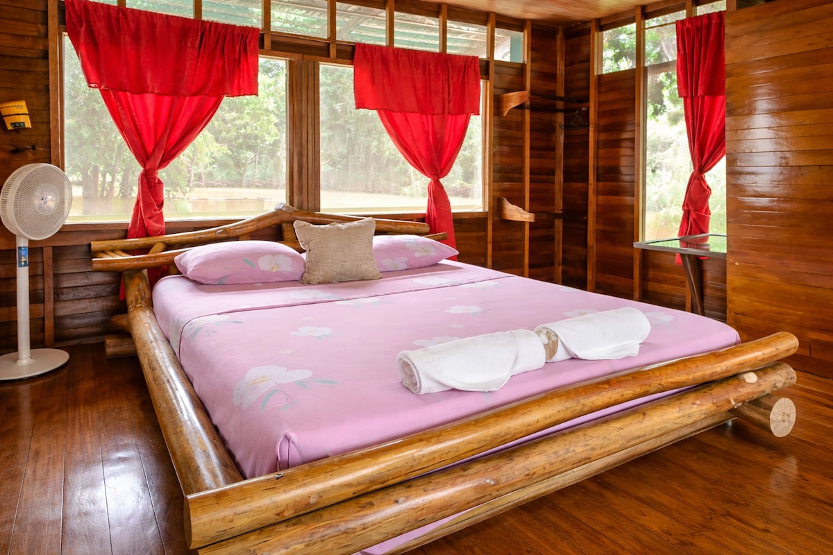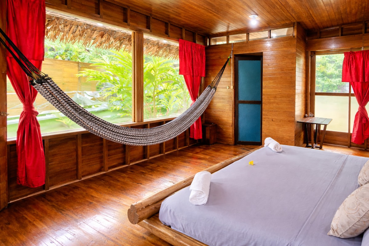 Dobbeltrom i en sjarmerende økohytte, 10 minutter fra Iquitos lufthavn og 30 minutter fra sentrum og hovedtorget. Rommene har en rustikk og naturlig stil, balkong med hengekøye og eget bad. På økolodgen får du oppleve den amazonske Kukama-kulturen, finne mye ro og nyte en fantastisk panoramautsikt over dramatiske solnedganger. Elektrisitet døgnet rundt, terrasse med mecedoras, bibliotek, bord for å studere og en trapp som tar deg med til å ta en dukkert i elven. Inkluderer frokost.