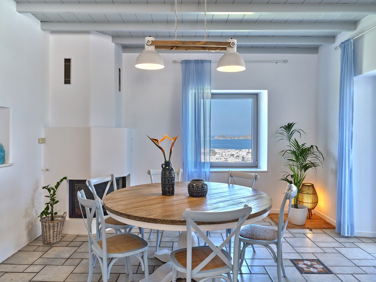 Villa Arismari ligger på en rolig åsside, omgitt av naturlige steinblokker, med utsikt over den vakre kysten av Orkos. Vi har en fantastisk panoramautsikt over Egeerhavet og naboøya Paros. Vi ligger mellom hovedstranden og de mindre buktene i Orkos. Mens du nyter utsikten som Villa Arismari tilbyr, kan du forberede deg på å ta de mest utrolige selfiene dine. Villa Arismari er en vakkert designet villa med minimal kykladisk arkitektur.