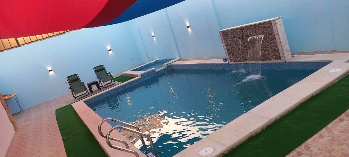 En luksuriøs villapå 4 000 m ² for deg alene, bare to minutter unna Umm Qais-monumentene. Nyt en fantastisk panoramautsikt, et romslig basseng med vannsklie, en fotballbane, et utstyrt treningsstudio og høyhastighets internettilgang. Et ideelt sted å slappe av med grilløkter og luksuriøse hotellmøbler og eleganse i hvert hjørne