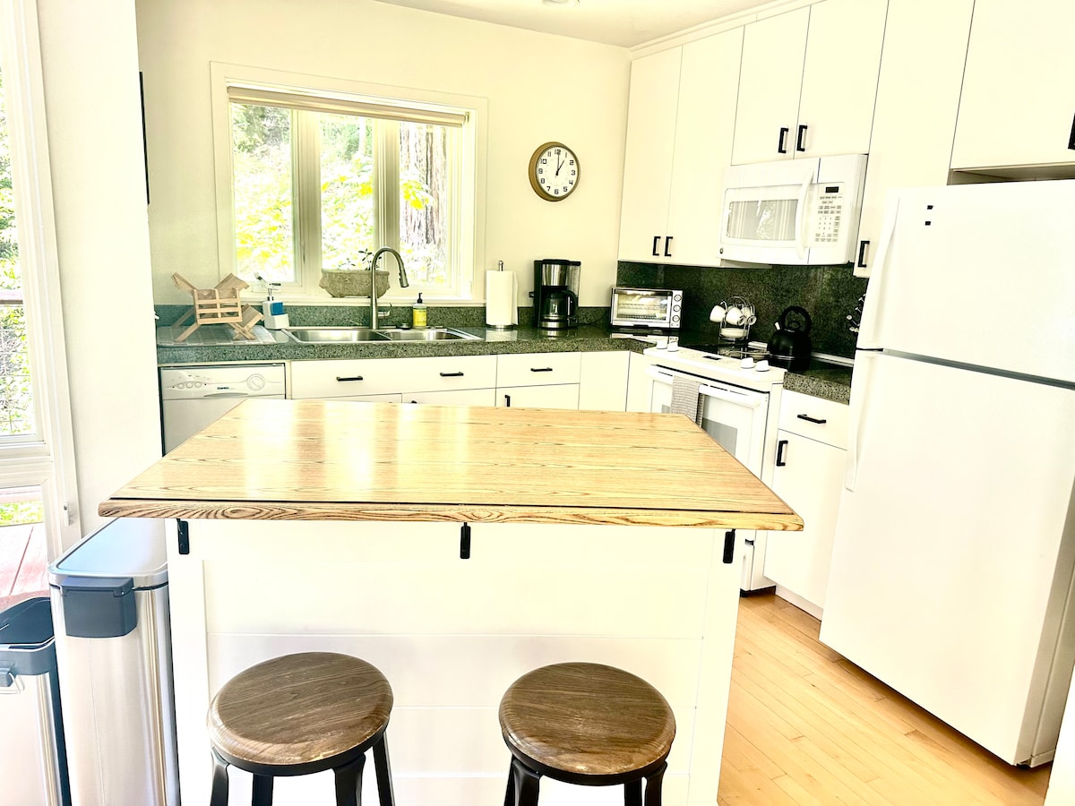 Det sjarmerende og stilige hjemmet vårt ligger blant majestetiske redwood-trær, og tilbyr et unikt tilfluktssted for gjester som søker en rolig flukt i hjertet av naturen. Gå inn for å oppdage et gjennomført designet oppholdsrom, utsmykket med naturlige treaksenter, stilig innredning og rikelig med naturlig lys som strømmer gjennom vinduene. Enten du er ute etter en romantisk ferie, en familieferie eller en helgetur, tilbyr hjemmet vårt den perfekte blandingen av komfort, bekvemmelighet og naturlig skjønnhet. Fire minutter til sentrum.