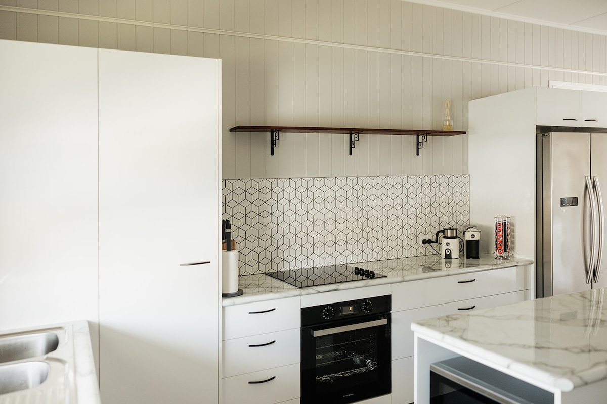 Nymalt og nytt plysjteppe (april 2025). Moderne mursteinshus med tre soverom. Gratis trådløst nettverk. Stor smart TV. Sentralt plassert i North Rockhampton. Spaser til kaféene i Red Hill, Glenmore shopping village inc. Glenmore Tavern! Rockhampton Shopping Fair ligger bare 2 km unna. Sikkerhetsskjermer, 6' gjerde + lås opp garasje. Stort utendørs underholdningsområde. Innsiden er ren, komfortabel og fullt utstyrt. Prisen per natt er for to gjester, hver ekstra gjest er $ 20 per natt.