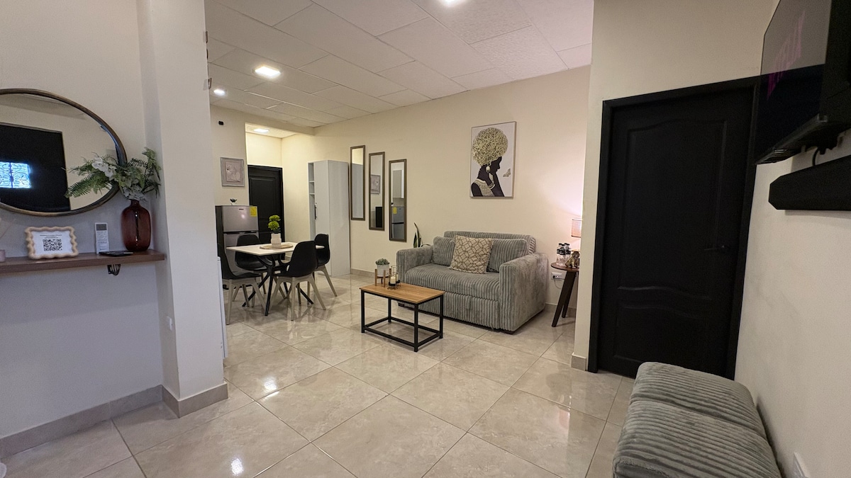 Luksussuite i tredje etasje (man må gå opp trapper). Citadellet er privat og har døgnvakt. Ved siden av kjøpesenteret San Marino. Den har stue, kjøkken, soverom, eget bad, smart-TV med Netflix, wifi, kjøleskap, parkering. Tilgangen til boligområdet er kontrollert og vi gjør alt for å gjøre prosessen raskere for gjestene våre, men det kan ta noen ekstra minutter å vente.