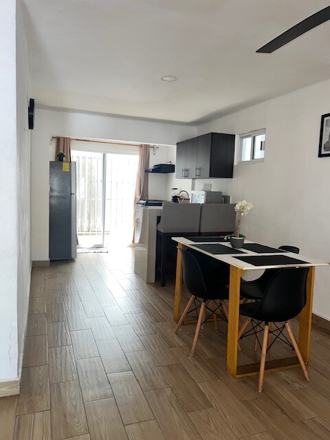 Nyt denne rolige og sentrale boligen i første etasje. Mindre enn 100 meter fra ADO bussterminal, et hjørne fra Soriana og Playamed sykehus, samt noen få hjørner fra inngangen til hotellområdet og Puerto Cancún, et rent, rolig og trygt sted. Den har to rom med kingsize-seng, kjøkken med alt du trenger, mikrobølgeovn, kaffetrakter og høyhastighets internett. Svært nær restauranter, barer, markedene 23, 28 og Parque de las Palapas.