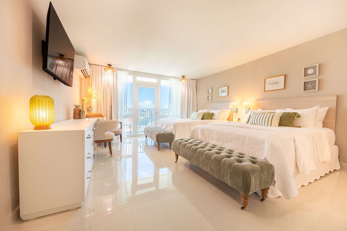 Privately owned Jr 1-Bedroom at ESJ Towers, next door to the El San Juan/ Fairmont Hotel. This 16th-floor apartment sits directly on a beautiful sandy beach alongside water sports and beach restaurants. King bedroom, recessed lighting, all white bedding and walls, 50" smart TV, Bluetooth speaker, washer and dryer, closet safe, full kitchen, and indoor parking space. Building amenities include a gym, lobby business center, and 24-hour gated security.