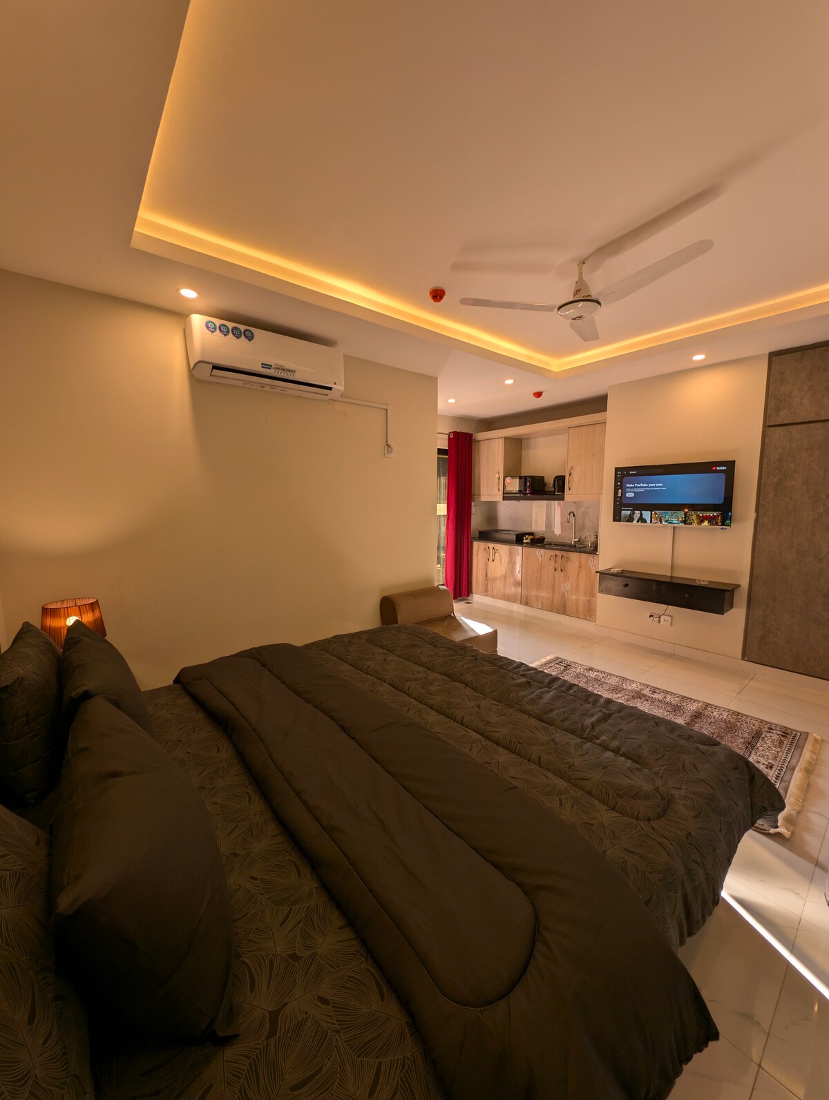 Hei, jeg er superhosten din, Haider Ali Khan, og jeg ønsker deg velkommen til å oppdage den perfekte blandingen av komfort og stil i denne iøynefallende studioleiligheten i Pavilion 99. Designet for korte og lange opphold. Tilgang til førsteklasses bygningstilbud (ekstra kostnad): – boblebad for avslappende spabehandling – Damp- og saunabad for en forfriskende detox. – Fullt utstyrt treningsstudio for å holde deg i form under oppholdet. Spis med utsikt på den berømte TKR Rooftop Restaurant ovenpå Perfekt for par, enslige reisende eller forretningsgjester