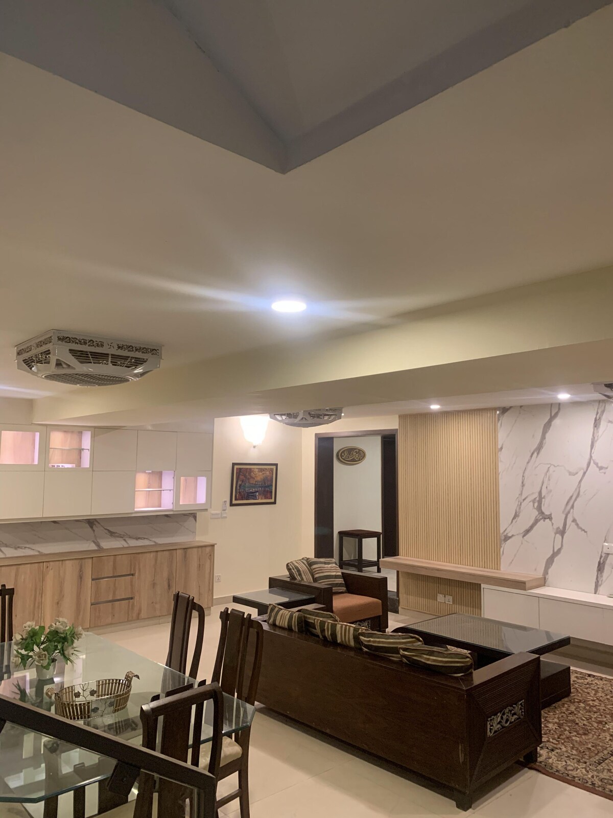 Komfortabel kjelleranneks tilgjengelig i en eiendom i F-6 Islamabad. Delen er et helt uavhengig rom med privat tilgang. Eiendommen er sikker og godt bevoktet. Omtrent 15 trapper ned. To soverom (hvert med eget bad) og en romslig TV-salong med et velutstyrt lite kjøkken (mikrobølgeovn, vannkoker, redskaper, vask, brødrister, komfyr). Klimaanlegg i alle rom og en 65-tommers smart-TV i TV-stuen. Alle fasiliteter er tilgjengelige. Vi ser frem til å ønske deg velkommen!