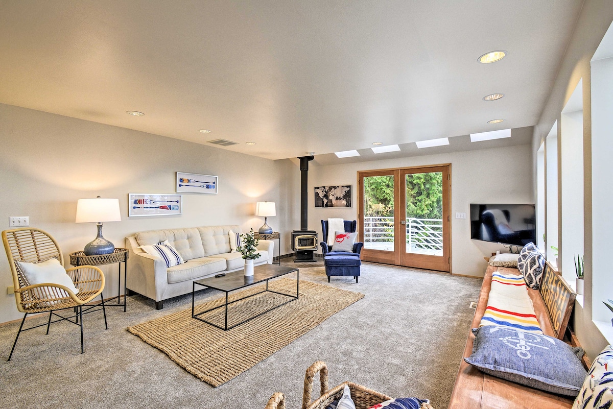 Byt din daglige grind mot en tur til kysten med denne Coupeville, WA, ferieutleie! Med et nautisk interiør og en terrasse med havutsikt, er dette 2-sengs, 2-bad hjemmet med en den typiske helårsferien. Start hver morgen med en spasertur til Sierra Country Clubs samfunnsstrand, og tilbring deretter ettermiddagen med å utforske attraksjoner som Fort Ebey State Park, sentrum av Coupeville og lokale hvalsafari. Senere, kom tilbake for en kveldsgrill mens solen dypper under vannet.