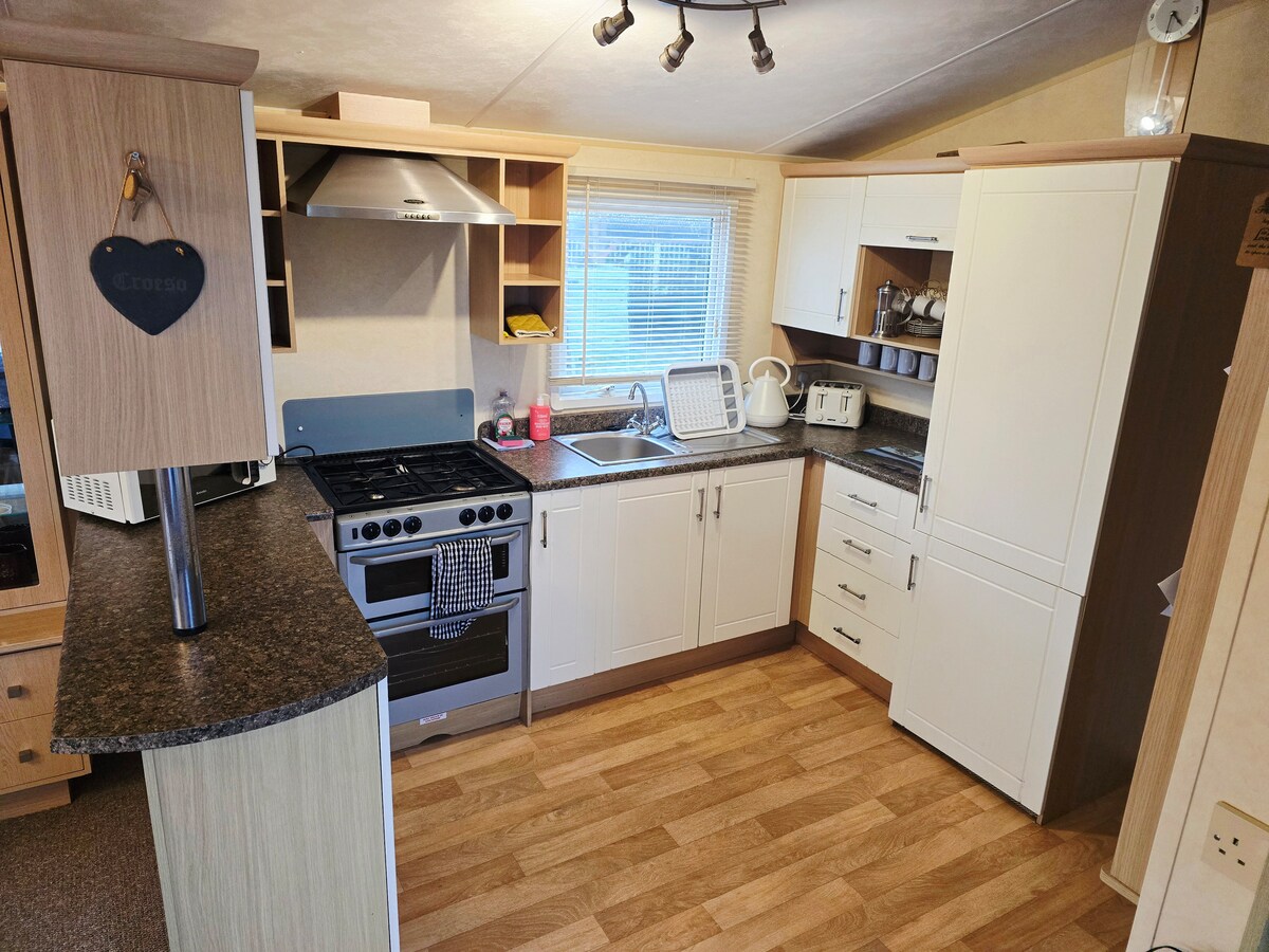 Anglesey - statisk campingvogn med tre senger og innendørsbasseng