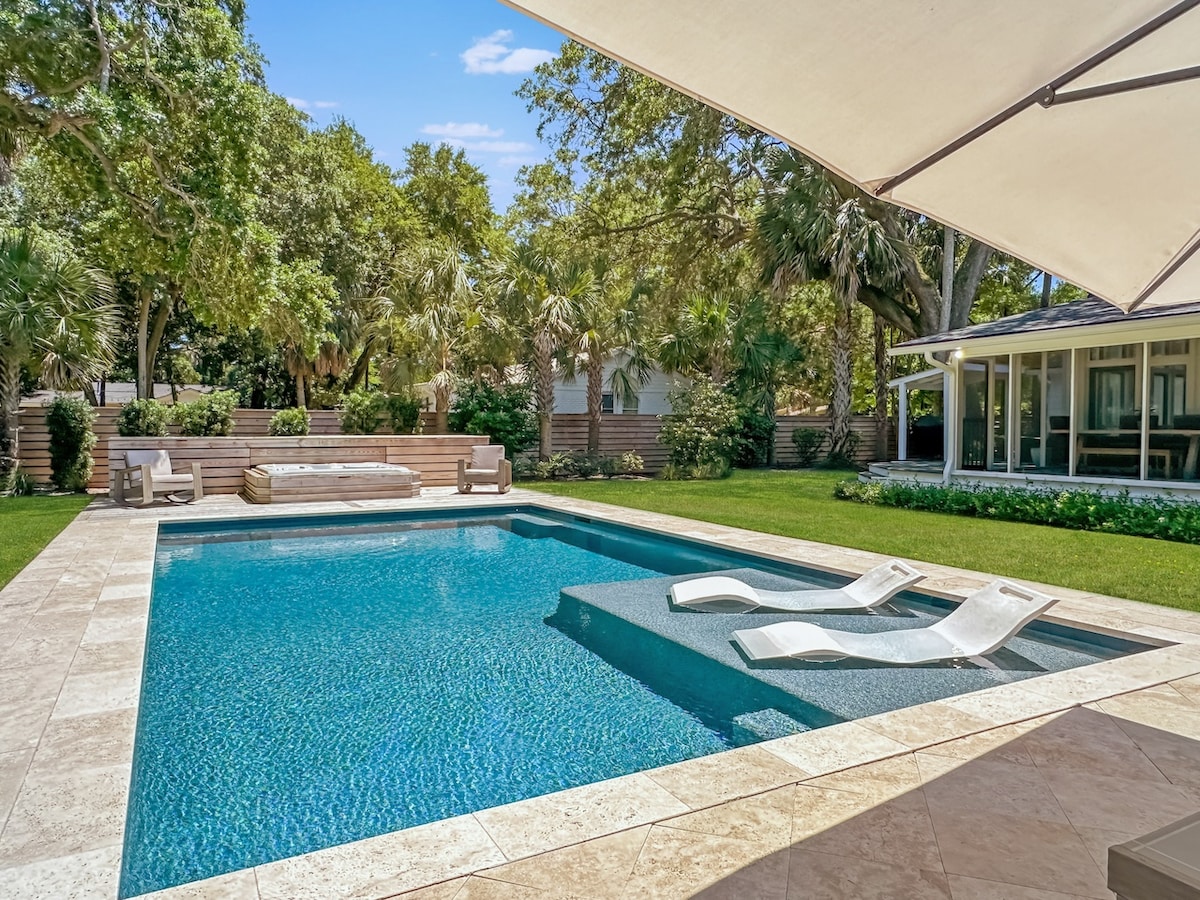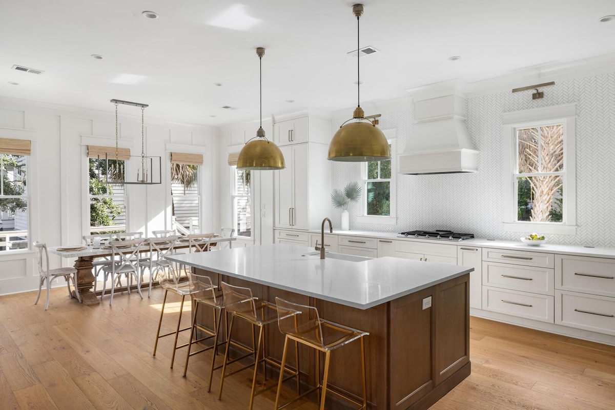 Ha det gøy med hele familien på dette elegante bostedet. Dette hjemmet har en ideell beliggenhet i gangavstand til stranden og i nærheten av alt IOP har å by på. Nyt solnedgangen på takterrassen og tilbring timer med å svømme i bassenget. Hjemmet er ideelt for familier med en rekke spill, shuffleboard, sykler, en golfbil, fire terrasser og massevis av plass innendørs. Hjemmet har helt nye møbler og er utstyrt med alt du trenger for å kose deg under oppholdet ditt og føle deg som hjemme.