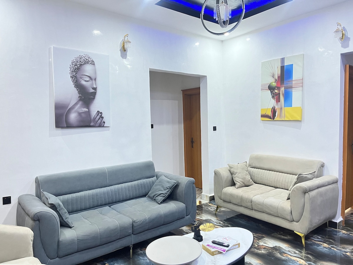 Velkommen til den vakre og koselige bungalowen vår med to soverom, som ligger i hjertet av Asaba. Enten du er her for å jobbe eller slappe av, vil du nyte uavbrutt strømforsyning døgnet rundt og høyhastighetsinternett for å holde deg tilkoblet. Sikkerhet og komfort er vår viktigste prioritering. Eiendommen overvåkes med overvåkningskameraer, og det er sikkerhet på stedet for å sikre sinnsro. En hushjelp er tilgjengelig for å hjelpe deg med eventuelle spørsmål eller behov under oppholdet. Vi gleder oss til å ønske deg velkommen – hjemmet ditt hjemmefra venter!