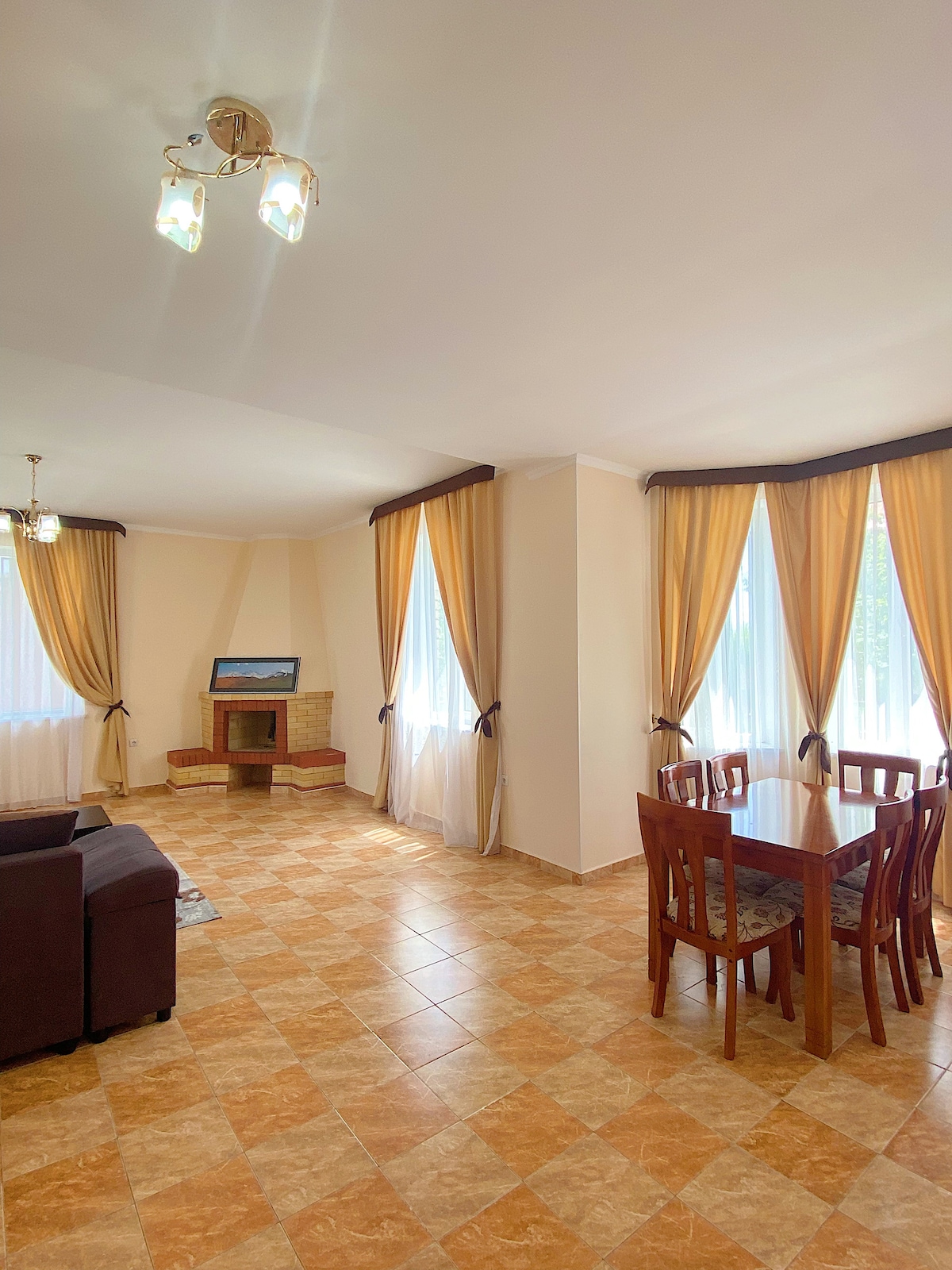 Hytta ligger 800 meter fra stranden i et rolig område nær hovedveien (150 meter). Noen av byens attraksjoner og aktiviteter er innen rekkevidde. Hagen er romslig, med parkering, samt grillplass, hvor du kan samles med hele familien og en stor gruppe venner. Fra terrassen har du en flott utsikt over innsjøen Issyk-Kul og fjellet hvor du kan se de vakreste solnedgangene. Soverommene er romslige og utstyrt med alle nødvendige fasiliteter for det komfortable oppholdet.