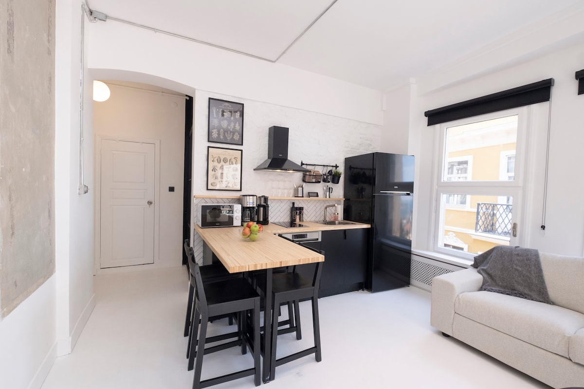 Kun fem minutters gange til Galataport, ti minutters gange til Galata-tårnet, - privat terrasse og grillplass til leiligheten. - studioleilighet med høyt tak - Det ligger i fjerde etasje i bygningen, det er ingen heis. - Ikke egnet for eldre. Fullt utstyrt (klimaanlegg, trådløs internettforbindelse, oppvaskmaskin, automatisk kaffemaskin, hårføner + strykejern, støvsuger, kjøkkenutstyr og mye mer) - Betalt parkering er 30 meter unna.