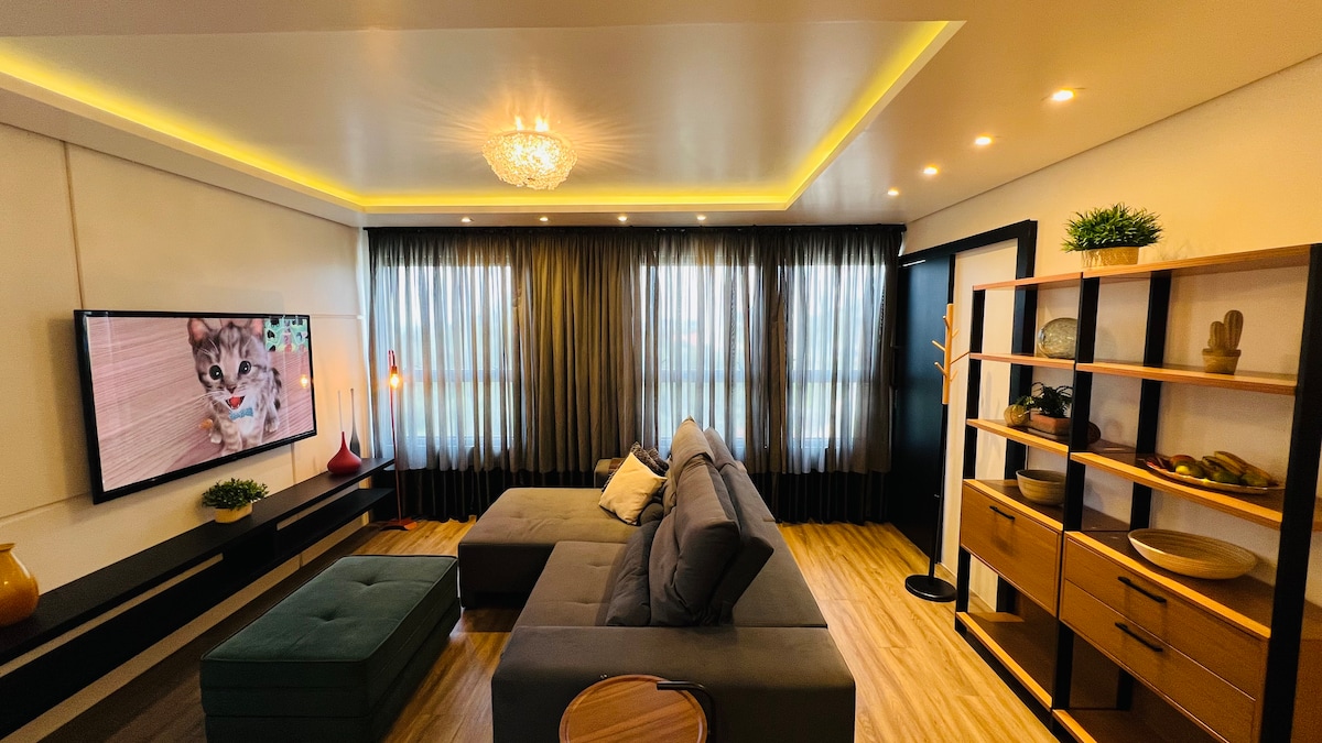 Lounge Apartment, som ligger 5 minutter fra Brava Beach og 10 minutter fra Balneário Camboriú. Beliggenheten er perfekt. Bare fem kvartaler fra stranden. Lukk alle fester og restauranter. Leilighet med komplett infra, basseng, treningsstudio, damp og fem griller. Leiligheten har fjellvendt jacuzzi med vann- og kromoterapi. Perfekt for å slappe av eller ta deg tid til å slappe av. Den har 58 'smart TV i stuen og 40' i soverommet. Komplett kjøkken. Maskinvask og tørker. Du kommer til å elske dette stedet.