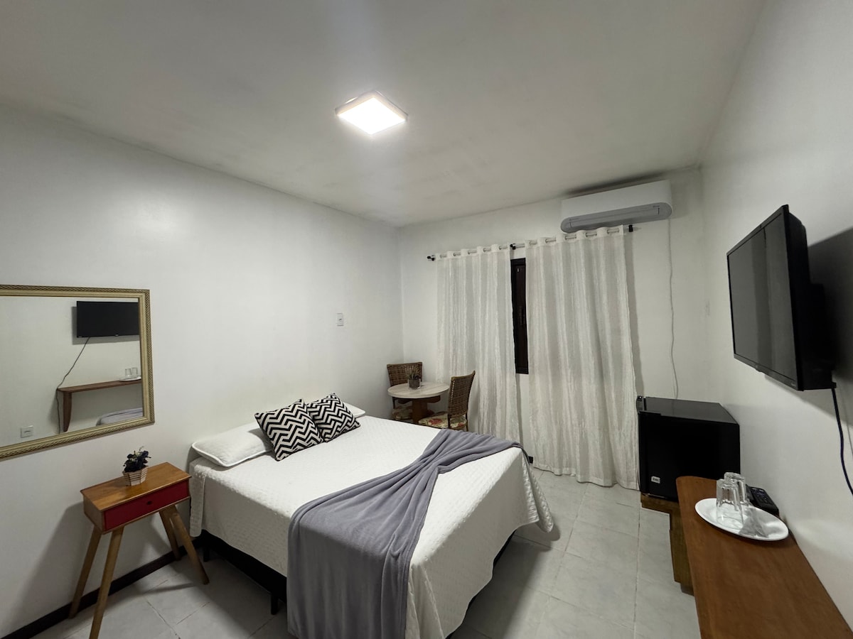 Våkn opp bare noen skritt fra stranden i dette gjennomtenkte, kompakte loftet, som ligger i et av de mest eksklusive nabolagene i det sørlige Brasil. Ideell for par, med en komfortabel dobbeltseng, en romslig høytrykksdusj, mikrobølgeovn, minibar, minikokeplate, klimaanlegg, TV, vannfilter, vifte og en dedikert arbeidsstasjon. Smart oppbevaring under sengen holder bagasje og utstyr pent ute av veien for et avslappet, ryddig opphold.