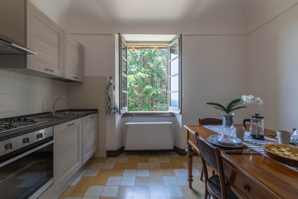 Romslig leilighet, nylig restaurert, inne i det sjarmerende slottet Doria Malaspina i Calice al Cornoviglio. Utstyrt med to soverom (ett soverom med én dobbeltseng og ett soverom med tre enkeltsenger). På soverommet med dobbeltseng er det mulighet for å legge til en seng for et barn på 2-12 år. Stille og lyst, det har en bred panoramautsikt over skogen og Calicese-dalen. Ideell for elskere av ro og uberørt natur.