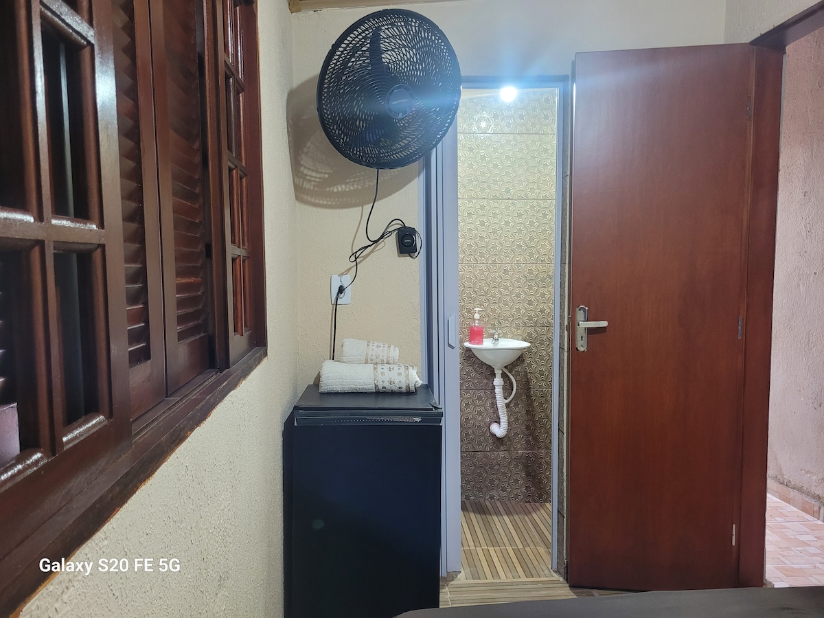Privat sted for gjester, svømmebasseng med fossefall, bad med varm dusj, kald dusj ved siden av bassenget, kjøleskap, komfyr, elektrisk stekeovn, elektrisk panne, airfryer, tallerkener og bestikk, grill og grillsett. Vi serverer porsjoner: reker, calabresa, kyllingbiter, pommes frites (ikke inkludert i dagsprisen). Privat gate, ingen utgang, asfaltert, ti minutters spasertur til stranden. obs: eieren bor i hovedhuset, edicule er reservert og privat for gjester. .