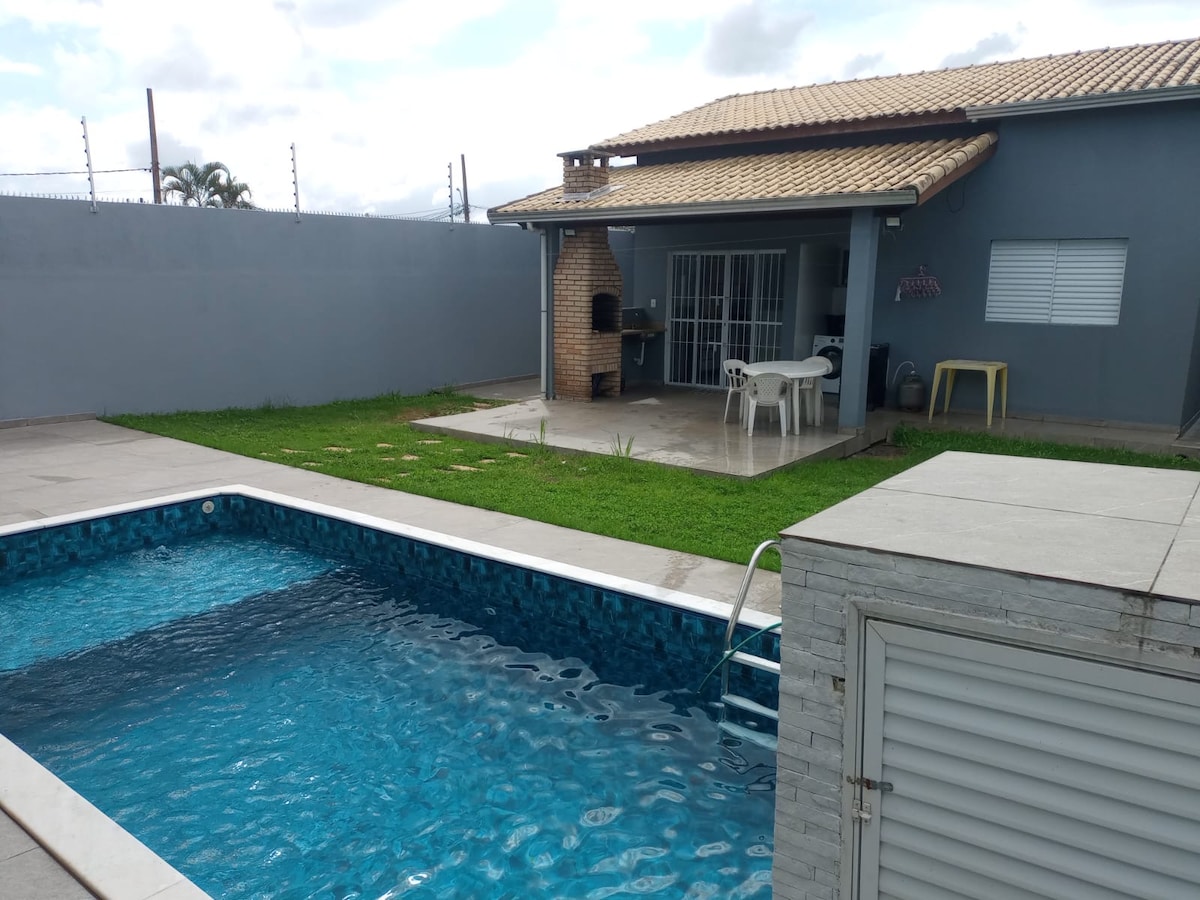 Uma delícia de casa térrea, com 3 dormitórios, sendo uma suíte. Sala ampla com sofás e mesa de jantar, ventilador de teto nos quartos e na sala, ótima área externa com churrasqueira , piscina e estacionamento para 8 carros. Localizada em uma rua tranquila e próxima de restaurantes e pizzaria. Pet friendly! Fique tranquilo em trazer seu animalzinho de estimação. 1200 metros da praia.