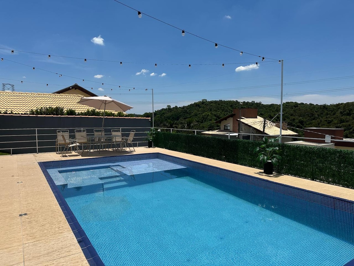 Casa Aconchegante – sjarm og luksus involverer Dette overnattingsstedet, med utsikt over svømmebassenget og en vakker solnedgang. To suiter med takvifte. Bredt rom i peis Spisebord Biljardbord Åpent gourmetkjøkken Piscina Chaise-nettverk og møbler i uteområdet som grenser til bassenget. Leir 400 meter unna for kjæledyret og barna dine. Bål Omgitt av kjæledyr Levering ved døren til huset Loteamento cm Portaria. Vi er kjæledyrvennlige. Sengetøy, putetrekk og håndklær er ikke tilgjengelig.