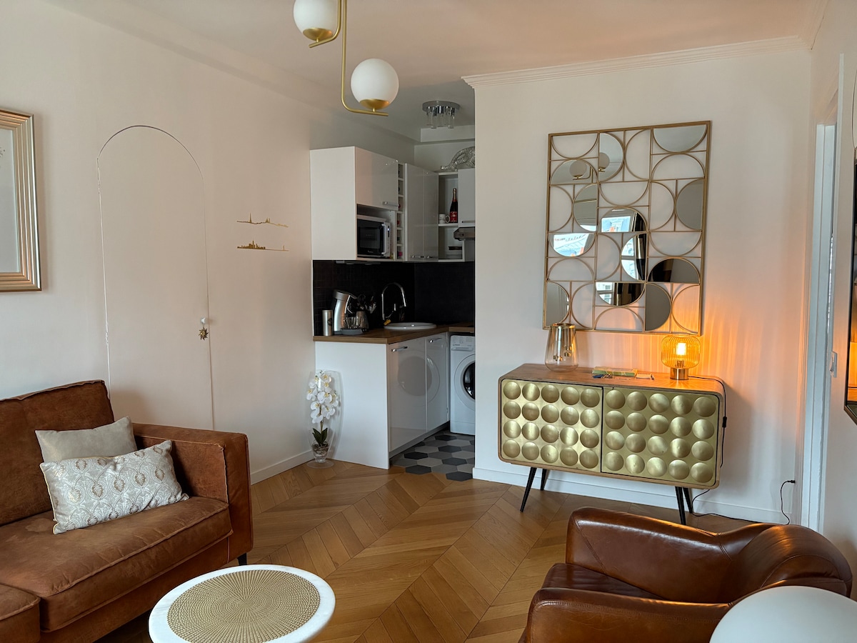El Tucan, fullt møblert og utstyrt leilighet for oppholdet ditt i Paris. En hyggelig, ren, koselig og koselig stue👌 - Utstyrt og utstyrt kjøkken med kjøleskap, vaskemaskin, Nespresso og te... - soverom med garderobe – stue med sovesofa og videoprosjektor - bad med dusj Alle rommene er uavhengige! Kollektivtransport to minutter unna (RER C) med Notre Dame -> ti minutter og Eiffeltårnet -> 20 minutter. Perfekt for å nyte Paris!