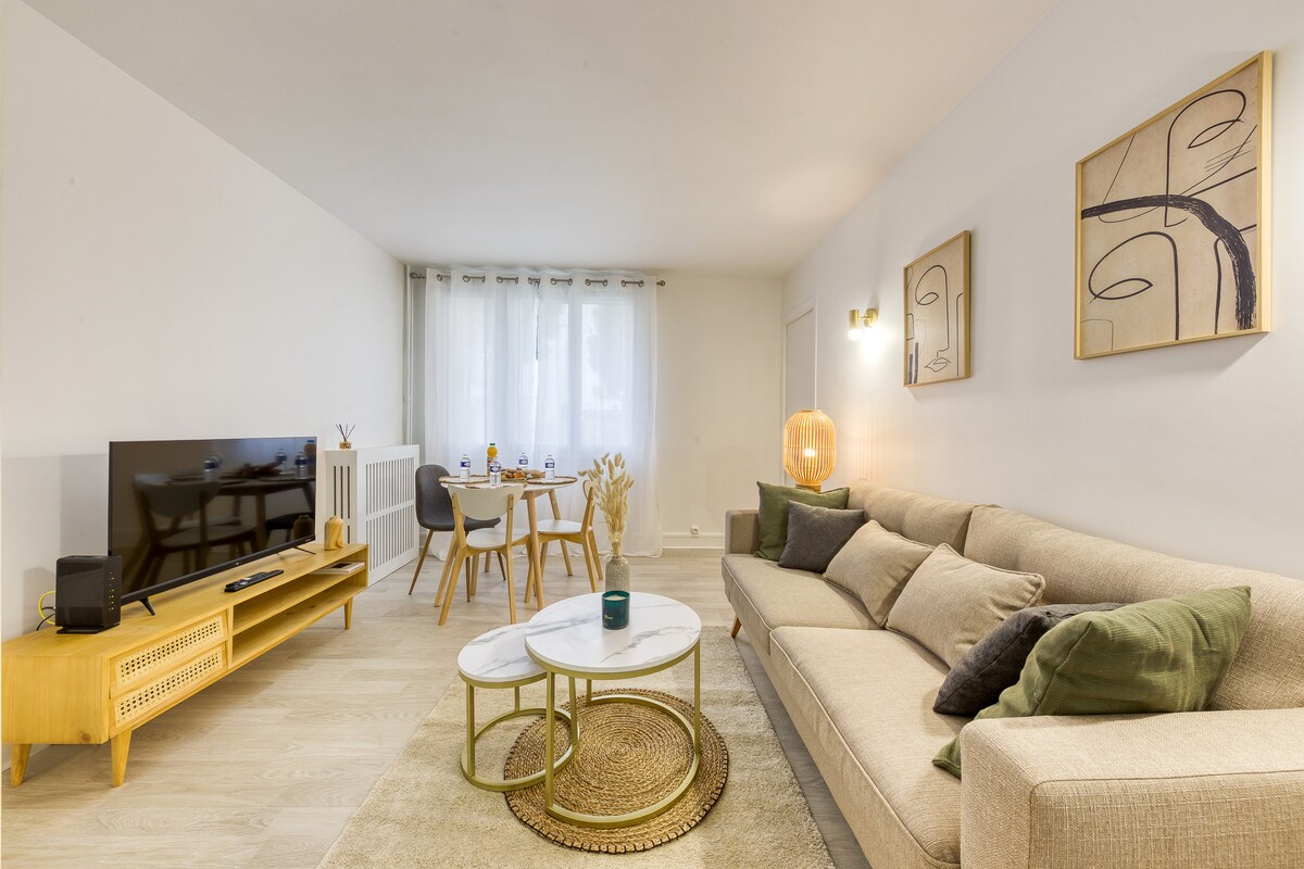 Bo ved portene til Paris i en helt ny T2 med unik sjarm i Ivry-sur-Seine! Denne leiligheten ligger i en rolig, sikker og moderne bolig med heis (2025), og utmerker seg med sitt panoramiske takvindu, et stort rundt vindu som bader stuen i lys. Privat balkong, komplette fasiliteter, ryddig dekorasjon, total komfort for 1-4 personer. Trådløst nettverk med høy hastighet, Premium Netflix, butikker, restauranter og T-bane til fots. En sjelden kokong for et minneverdig opphold!