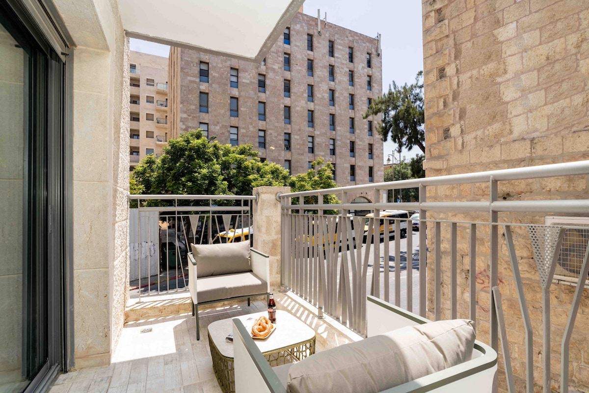 Solrik leilighet med ett soverom, utsikt mot HaNevi'im og utvidet balkong