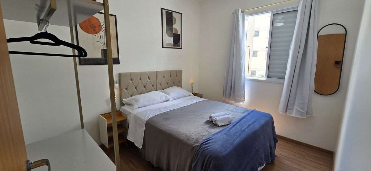 For de som ser etter et godt plassert, trygt sted, med parkering inkludert og mye sjarm, har du kommet til riktig sted! I nærheten av alt du trenger, 3 minutter fra sentrum! Privilegert beliggenhet med: supermarked, bensinstasjon, bakeri, Fatec, UNESP, treningsstudio og fritid. Leiligheten vår har to soverom med klimaanlegg, bad, balkong, stue med klimaanlegg, fullt utstyrt kjøkken, TV på soverommet og i stuen, med mer enn 500 kanaler, to parkeringsplasser og døgnåpen concierge.