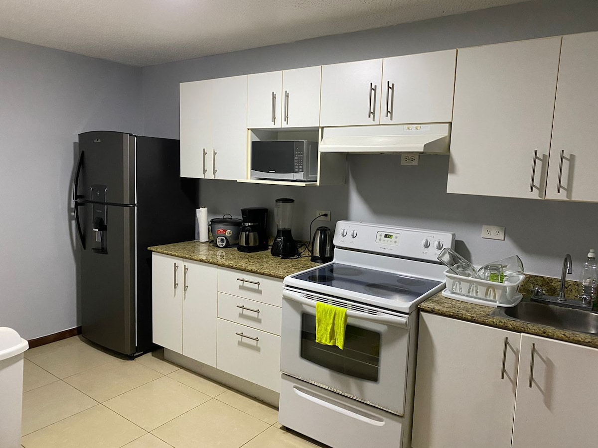 A solo 1:30hrs de San José, es un acogedor apartamento para 5 personas, 2 camas queen size en el cuarto principal + sofá cama en la sala, completamente equipado con acceso directo a Playa Blanca, una de las playas más bonitas de la zona, piscina tranquila (para niños y adultos) y ambiente familiar. Cuenta con parqueo, seguridad 24hrs, recepción y paños para la playa y piscina. Cerca de restaurantes, súper y heladería. A solo 15 minutos del centro comercial Herradura y Los Sueños.