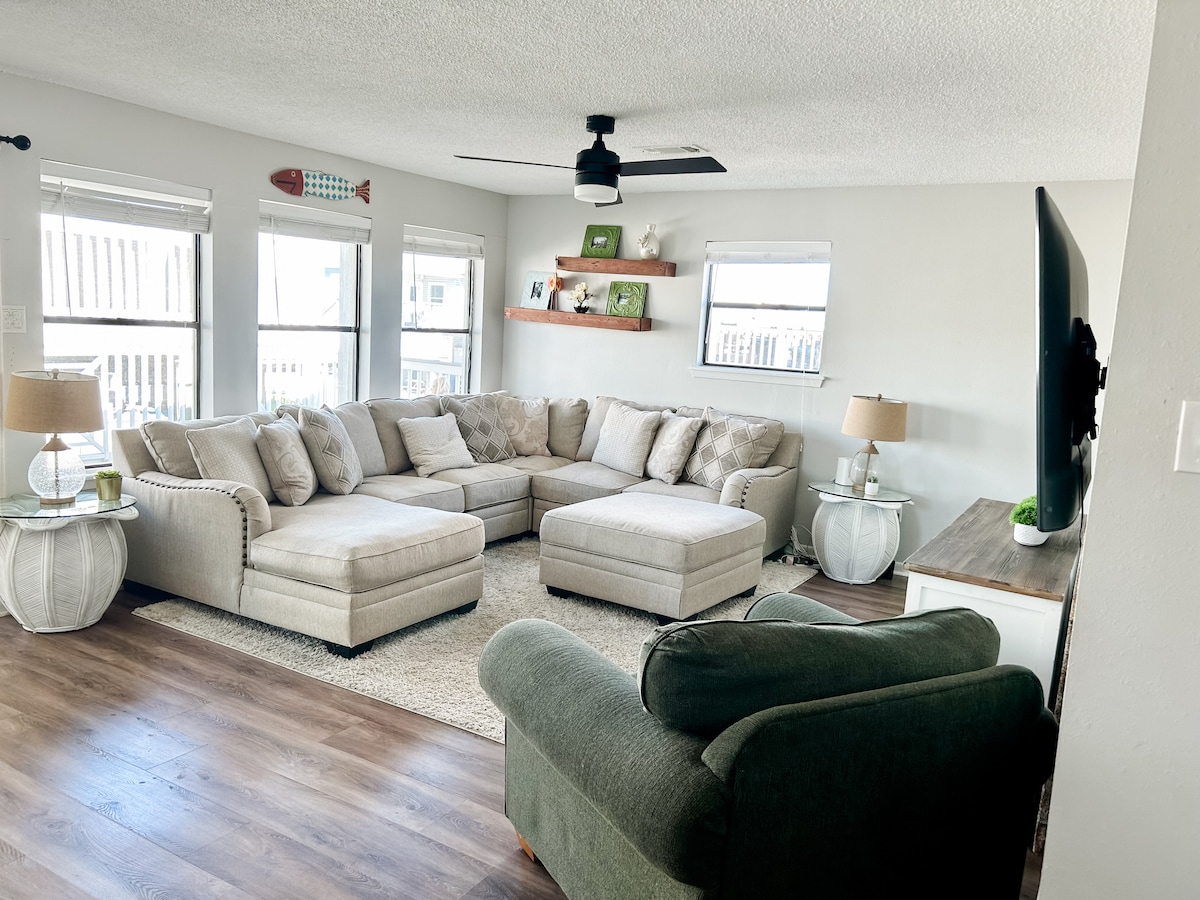 Frisk! Rent! Lyst! Denne skjønnheten ble nylig ombygget og føles som ny. To minutters spasertur til stranden, ta husets golfbil (gratis!), eller kjør noen sekunder. Dagligvarer ligger også veldig nærme. Nær nok byen til å oppleve attraksjonene som en vannpark, en fornøyelsespark, museer, vannsport, natur, båtliv eller fiske i bukten og i golfen. Huset har en flott åpen planløsning med mye plass og romslige soverom. Huset inkluderer en golfbil! Verdt $ 150 per dag... ingen kostnad!