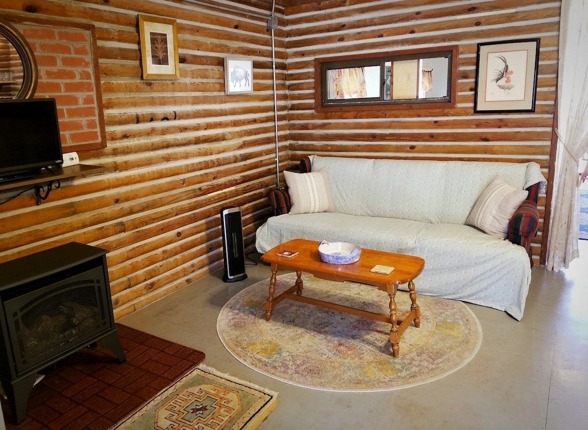 Fredelig tømmerhytte på landet (ingen ekstra gebyrer).