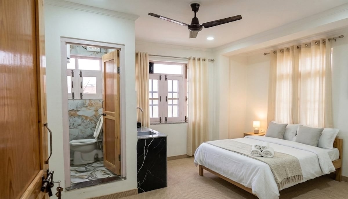 Slapp av sammen med familien på denne fredelige og moderne Homestay. Leiligheten er fullt utstyrt med alle fasiliteter, inkludert et fullt funksjonelt moderne kjøkken. Leiligheten "B4" ligger i andre etasje og har en vakker utsikt over grønne marker. Et fredelig og meditativt rom som er omgitt av natur. Dette stedet er ideelt for et par. Ligger nær de berømte Mughal-hagene med innsjø, skog og turstier bare minutter unna.