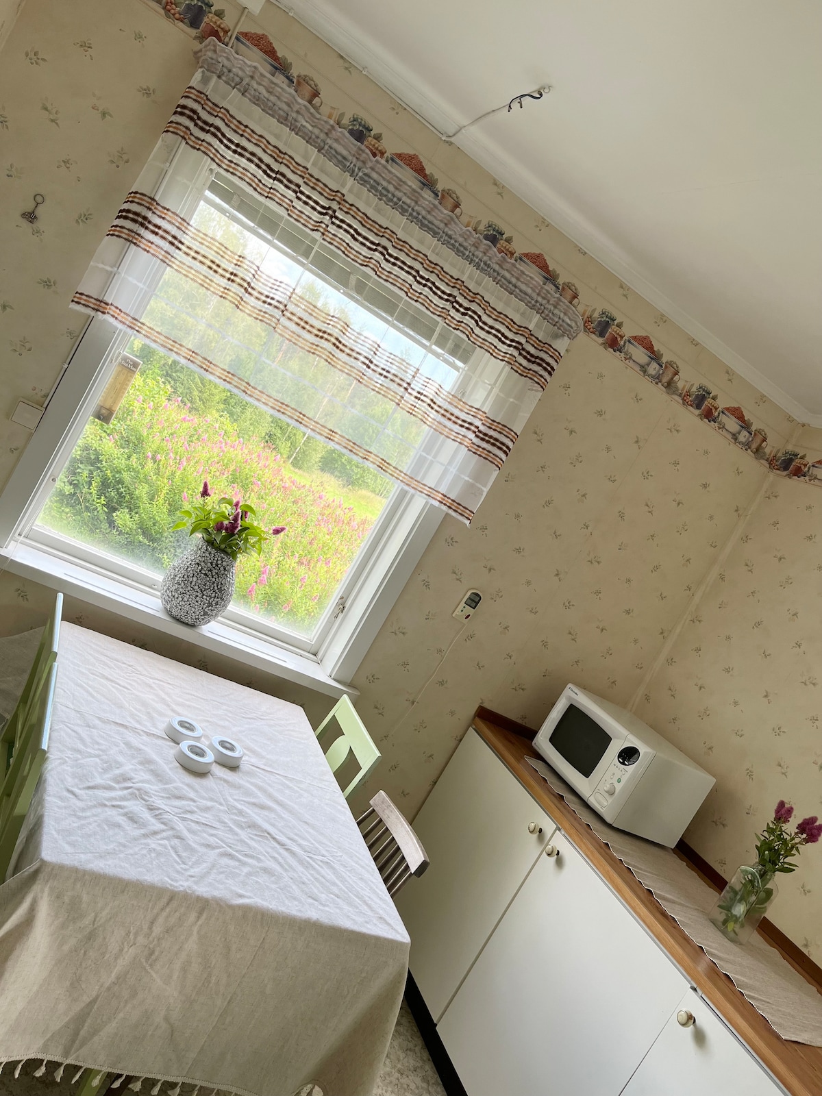 Velkommen til oss i Delsbo, Hälsingland. Perfekt for de som er på reise, jobbreise eller ønsker å feriere i Dellenbygden. I huset er det et stort utstyrt kjøkken med vedovn, fellesskapsrom/soverom med 4 senger og flis komfyr. Glasert veranda. Bad med toalett, dusj og vaskemaskin. Eiendommen ligger like ved naturen og Dellensjöarna, ca 4 km fra sentrum der det er restaurant, matbutikk, skatepark mm Ca 3 mil til järvsöbacken og Hazela skianlegg. Gjester har ansvar for rengjøring før avreise.