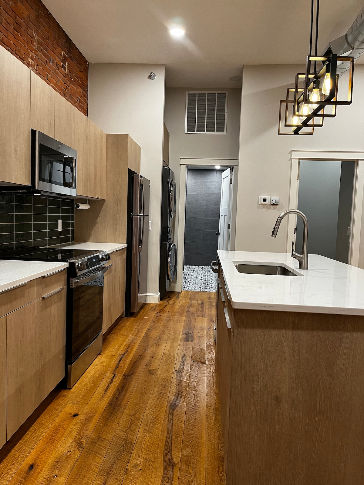 Luksuriøs leilighet på 1400 kvadratfot. Alle apparater, inkludert vaskemaskin og tørketrommel. Raskt internett og kabel-TV. Gangavstand til hoteller, dagligvarer og Schells Brewery. Asfaltert sykkelsti over gaten. Suiten er perfekt for arbeidende mennesker som kommer til New Ulm og trenger et veldig komfortabelt sted å bo på kort sikt eller lenger. Det passer også godt for en helgetur. Vi er til tider fleksible med antall gjester. Hvis det er mer enn tre, må du be om forhåndsgodkjenning. Den andre sengen er en futon i et lite rom.