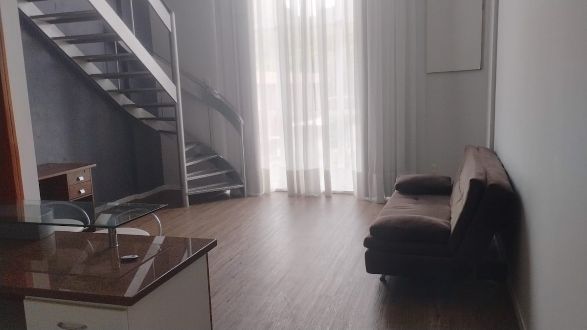 Et rolig sted med god beliggenhet i Jaraguá do Sul sentrum. Loftet ligger overfor SCAR Cultural Center, noen minutter fra kjøpesenteret, markedene, bankene, barene og restaurantene. Soverommet har et boblebad, badehåndklær, ansikts- og hårføner, en fantastisk dobbeltseng og en enkeltseng. Kjøkkenet er komplett med komfyr, smørbrødsgrill, airfryer og kaffetrakter. Den har sentral klimaanlegg, en stor, komfortabel sofa, en 55-tommers TV og et toalett. Med en privilegert utsikt over naturen.