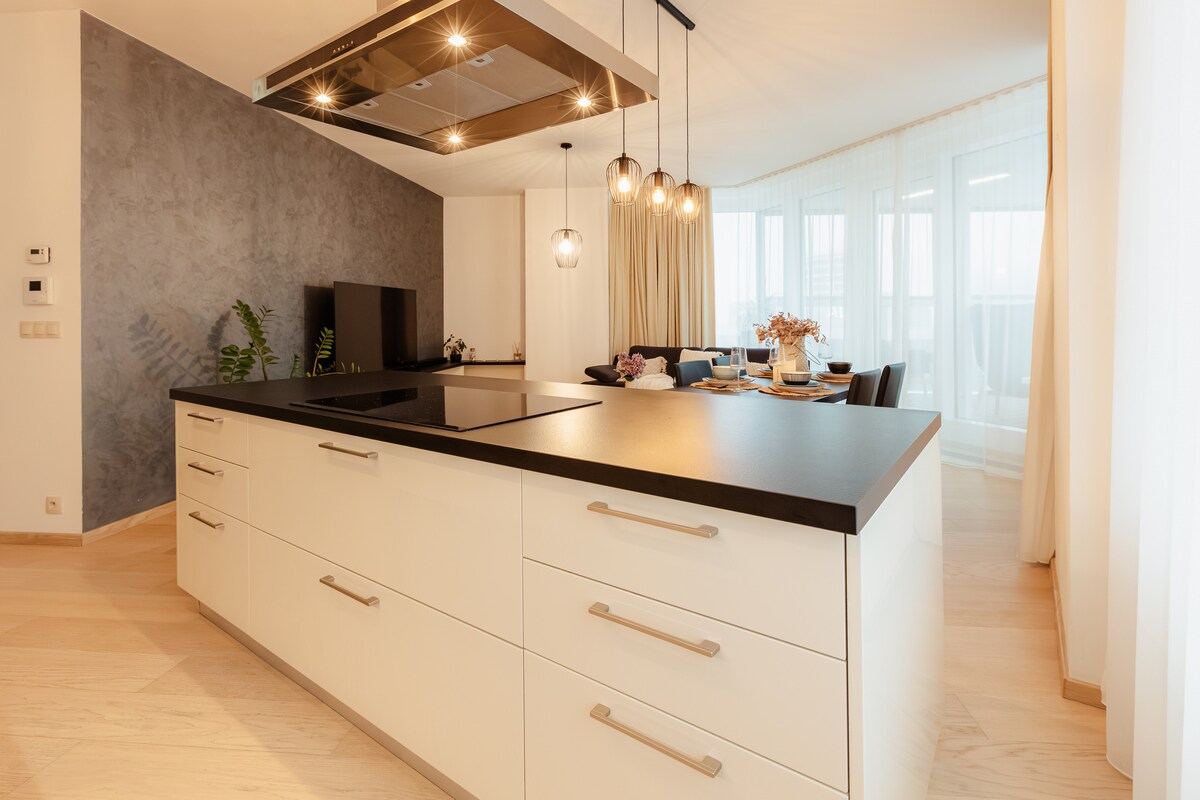 Oppdag dette romslige loftet på 3,5 rom bare minutter fra Bratislavas sentrum. Den er spredt over to etasjer og har ett soverom og et åpent galleri ovenpå, pluss et andre soverom, et lyst stueområde med et fullt utstyrt kjøkken og et stort badekar for to nedenunder. Nyt 5 meter høye vinduer, utsikt over gårdsplassen, to klimaanlegg og nesten 100 kvm med komfort. Familier vil sette pris på barneområdet, utendørs lekeplasser, babyseng og gratis undergrunnsparkering.