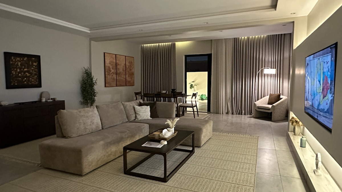 Velkommen til ditt ideelle reisemål Leilighet med førsteklasses beliggenhet💎 Oppdag det perfekte stedet å bo med vår utsøkte leilighet, som ligger i et førsteklasses område med enkel tilgang til attraksjoner og restauranter og er perfekt for forretnings- eller feriereiser. Denne leiligheten har elegante og nye møbler, en romslig stue, et særegent kinorom 🎬, og du kan glede deg over trådløst nettverk med høy hastighet og privat parkering, slik at du enkelt kan utforske byen. Hotell Bestill oppholdet ditt i dag og nyt komforten og bekvemmeligheten ved ✨ Arab Mall | 10 minutter Redse Mall | 12 minutter Flyplass | 13 minutter Sjøgrensesnitt | 14 minutter