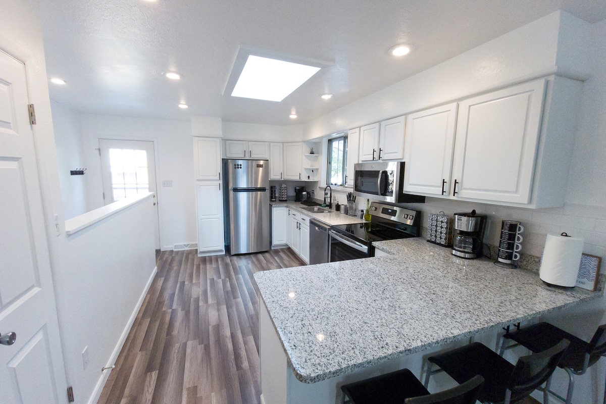 Perfekt beliggenhet! Flott sted for familier eller for alle som ønsker å nyte Colorado. Sjarmerende hus 1,5 km fra Olde Town Arvada, med bybane, restauranter, bryggerier, arrangementer og butikker!Rask tilgang til I-70, Denver ligger bare 13 minutter unna (Ball Arena) og skiløyper er 60 miles unna! Red Rocks ligger 20 minutter unna! Parker over gaten! Moderne hus er dekorert med en frisk minimalistisk stil. -1 kingsize-senger, én queen-seng og to enkeltsenger. - sammenleggbar queen IKEA-sofa - Møblert kjøkken. - Uteplass - se hunderegelen