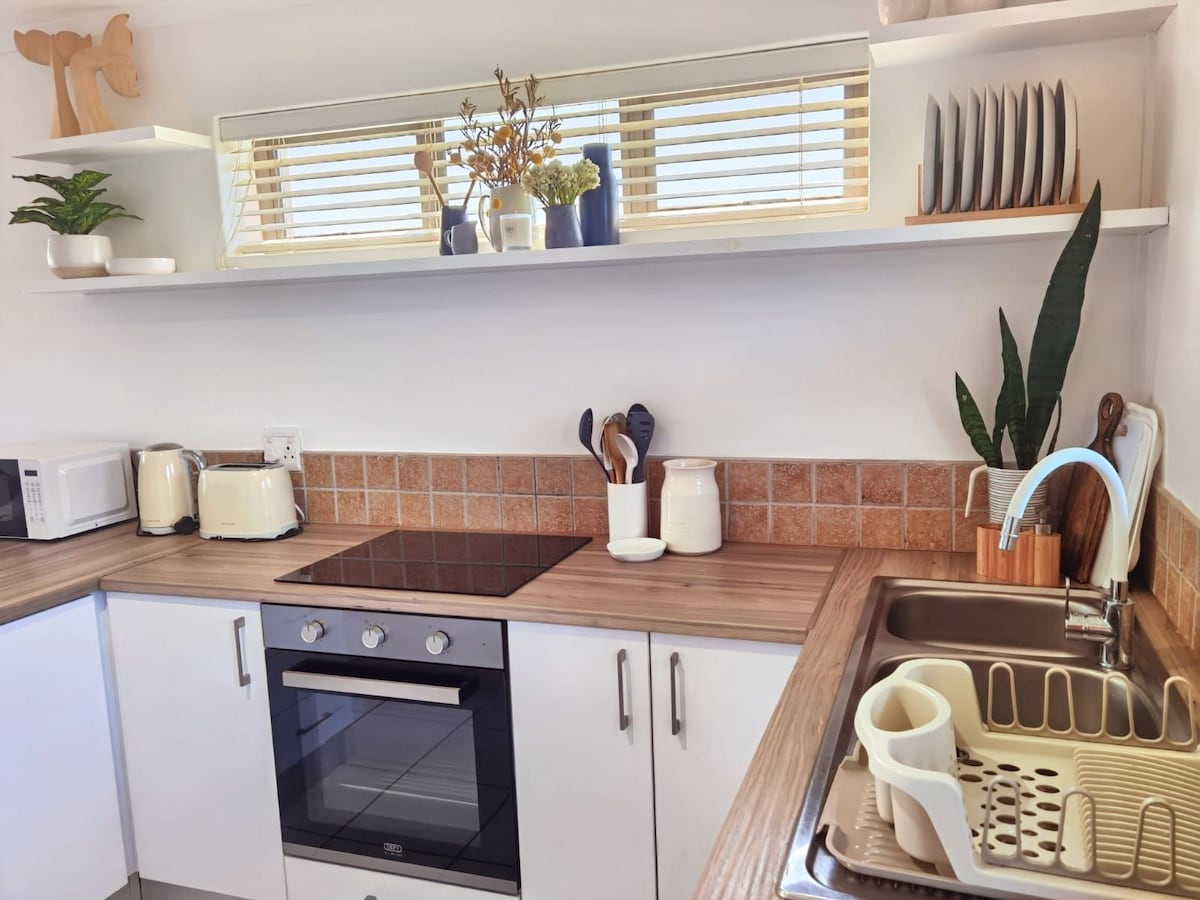 Nydelig privat studioleilighet i nærheten av hovedhuset, selvbetjent. Alt i ett rom i studioet, dobbeltseng, bad, tekjøkken med, kjøleskap, mikrobølgeovn, liten komfyr med to tallerkener og alle kjøkkenredskaper, spisebord, privat underholdningsområde med braai/grill. Plass til maksimalt to personer. 100 meter til stranden, flott surfested foran og lange spaserturer. Gå til restauranter og butikker. I sentrum av den lille byen. Trådløst nettverk uten tak.
