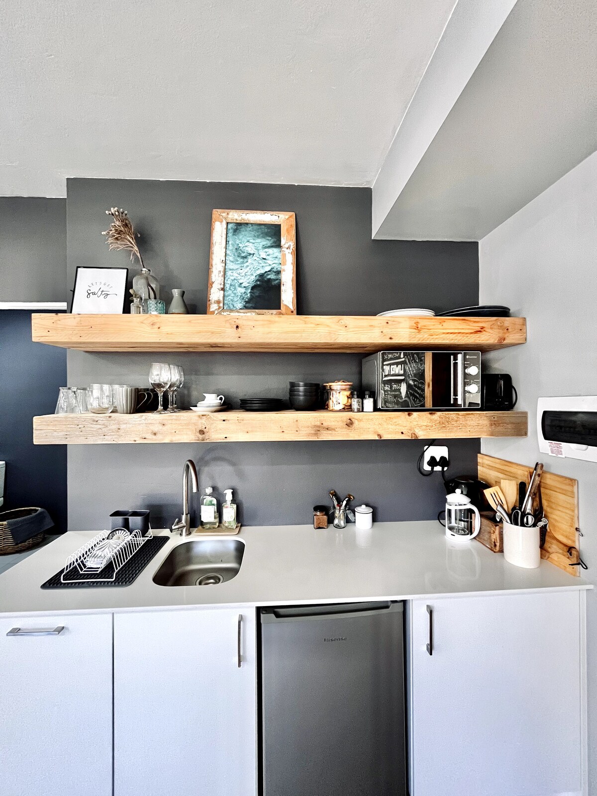 En romslig studioleilighet i loftsstil med åpen planløsning, med plass til to gjester. Perfekt for et par eller en enslig reisende. Det ligger fredelig tilbaketrukket fra hovedveien og innenfor gangavstand til stranden. Det er det perfekte stedet for en ferie, surfing eller forretningsopphold. Separat inngang til en uteplass med utsikt rett over Lowerpoint. Nyt spektakulære soloppganger mens du nyter en morgenkopp, eller nyt en braai på terrassen med kveldsdrinker, mens du ser på bølger og delfiner.