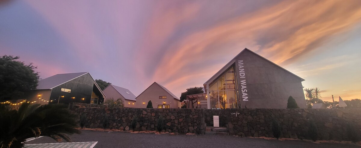 Dette er et rolig, privat pensjonat som ligger i den østlige landsbyen ◈ Jeju. (Lisens og sikkerhetssertifisering for landbruks- og fiskelandsbyer.) ◈ Utendørs jacuzzi og vegansk frokost er gratis. Lading av ◈ elektrisk kjøretøy er gratis. (7 kW raskt/verifiseringskort leveres på forespørsel) Denne innkvarteringen er ◈ for to personer og kan bestilles for opptil tre personer. (30 000 KRW per natt når du bestiller for 3 personer/mindre enn 48 måneder unntatt ekstra personer) ◈ Hvis du har barn under 12 år med deg, må vergen være spesielt forsiktig for å forhindre sikkerhetshendelser. (Barnestol tilbys på forespørsel.) ◈ Mindreårige under 19 år må ledsages av en verge, og kjæledyr er ikke tillatt. Utendørsbad er muligens ikke tilgjengelige hvis ◈ været er dårlig (kraftig regn, kraftig snø osv.). Dette ◈ er et veganorientert overnattingssted. Vi har ekskludert alle gjenstander og matvarer fra animalske ingredienser så langt det lar seg gjøre. Ingen ◈ grillservice. (brannforebygging) ◈ Prøv å lete etter "Jeju Dabansa"!