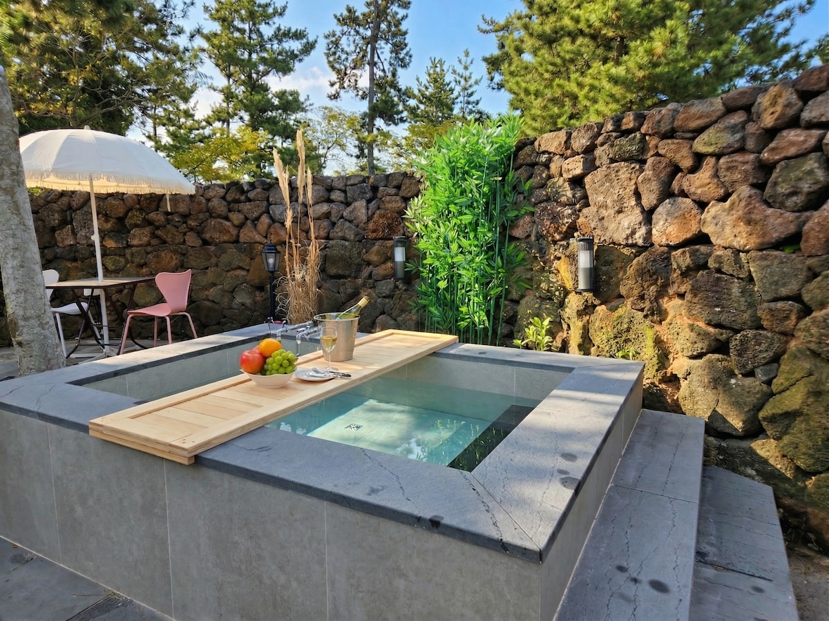 Det er et rent og rolig sted å bo i Taeheung-ri, Namwon-eup, Seogwipo-si. Det er et separat hus som er koblet til huset vi bor i, og det er et uavhengig rom. Taket er høyt, så det er ikke trangt, og du kan se solen på dagtid og den stjerneklarte nattehimmelen om natten. Det er store vinduer foran og bak, så det er en glede å se den solfylte hagen og himmelen bak huset. En stor katt som heter Hobby bor i gårdsplassen og i skuret som er et snekkerverksted. Selv om han liker mennesker, nærmer han seg ikke først, men hvis du hater eller er redd for katter, kan det være ubehagelig. Det er 5 minutter med bil til Namwon-sentrum og stranden, hvor du finner ulike restauranter, Hanaro Mart, nærbutikker og andre fasiliteter. Det tar 20 minutter å komme til Seogwipo, og 15 minutter å komme til Saryeoni-skogen og Red Oreum naturreservat. Det tar omtrent 1 time å komme til flyplassen. Det tar ca. 15 minutter å gå til bussholdeplassen, og du kan reise med buss gjennom Ilju-ro, men det er ubeleilig å reise uten bil. (Parkering - Det er en parkeringsplass i hagen)