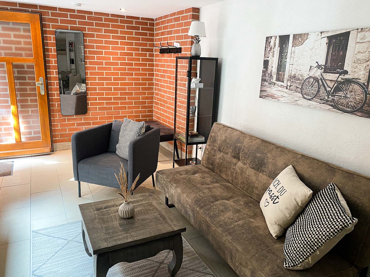 Entspanne dich mit der ganzen Familie oder Freunden in dieser Unterkunft. Das Loft umfasst mehr als 200 qm und liegt direkt am Park. Auf dem Balkon kann man grillen und schaut dabei ins Grüne. Das riesen Wohnzimmer bietet Platz zum Tanzen oder einfach nur gemütlich am Ofen zu sitzen oder zu kickern. Auch eine Tischtennisplatte ist vorhanden. Im Bad gibt es eine geschlossene Badewanne mit Musik und eine Waschmaschine. Die Küche ist komplett eingerichtet. Vier Schlafzimmer mit je zwei Betten 😊