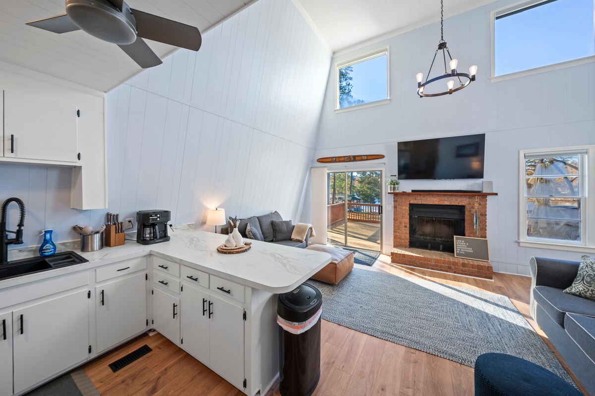 Our beautiful cottage for adults only is set on a private spring fed pond with all amenities to unwind from the day-to-day hustle. A porch with rocking chairs, brick fire pit and outdoor lighting in the courtyard make this your destination for relaxation. Take a walk in the 20 acres of wooded trails, fish, kayak, paddleboat, read a book, write, listen to music or just take a nap. This property lets you unplug from the world, relax, and connect with nature without giving up modern conveniences.